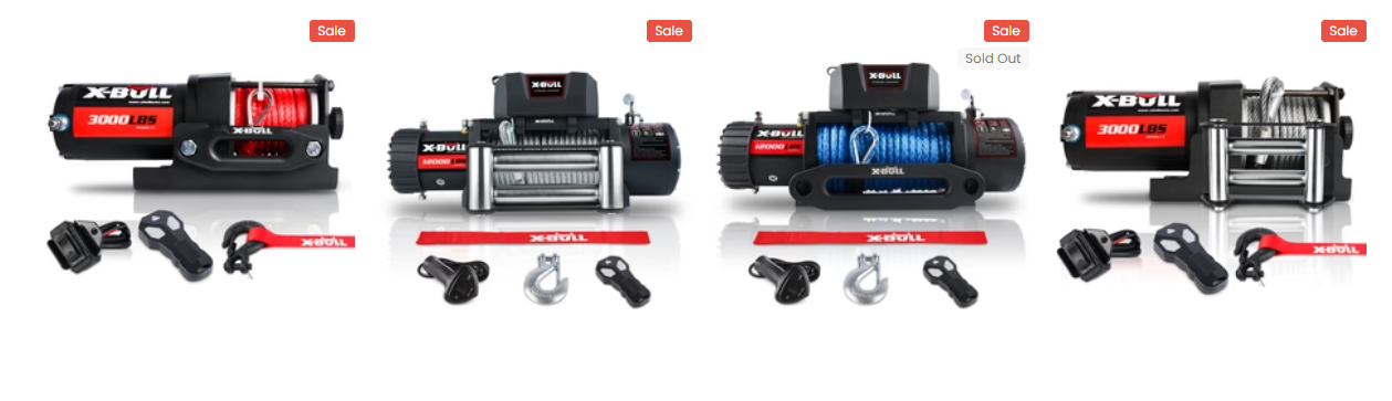 X-BULL winch series has dozens of winches ranging from 2,500 pounds to 14,500 pounds, with nylon rope or wire rope.